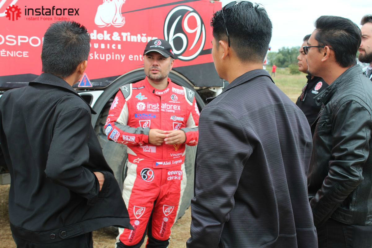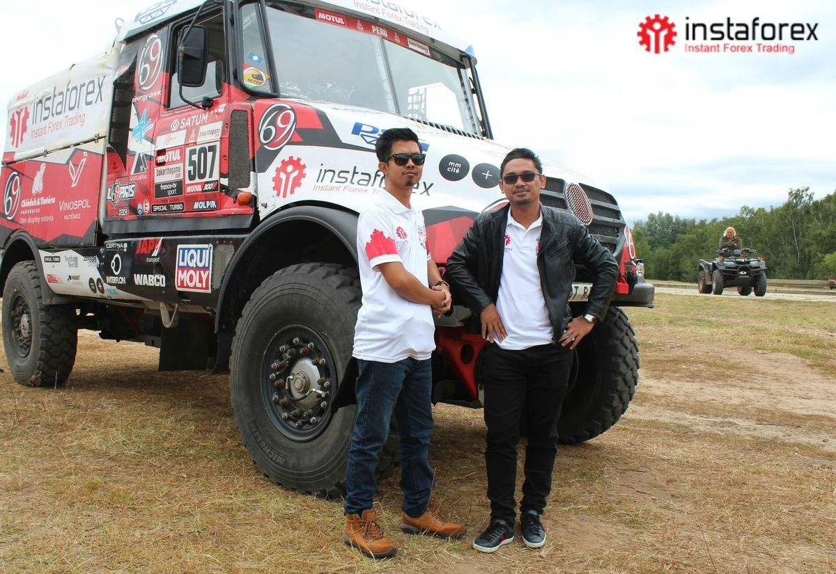 Pada hari kedua, para tamu kami bertemu dengan sejumlah pembalap dari Tim Loprais InstaForex, tim balap terkenal dan peserta reguler di Dakar Rally – balapan antar benua tahunan yang diadakan di berbagai belahan dunia. Pemimpin tim dan pembalap utama, Aleš Loprais, dengan senang hati bersedia memamerkan mobil dan menjawab pertanyaan mitra kami tentang balapan tersebut. Dia juga mengendarai truk balap dengan semua orang yang ingin memiliki pengalaman mengemudi ala balapan yang sebenarnya. Tidak ada kata-kata yang dapat menggambarkan perasaan fantastis itu. Sangat mendebarkan, bahkan menjadi anggota kru Dakar Rally untuk beberapa jam, beraksi di jalan dengan kecepatan tanpa batas.